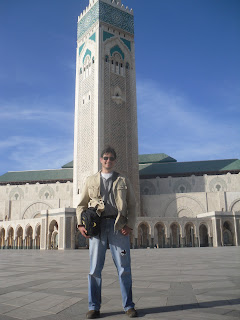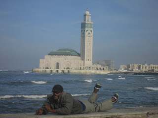 Above: The Hassan II Mosque, dominating Casa's skyline. Below: 10 feet to the left, the Mosque shares the shot with an unsuspecting - but friendly - local