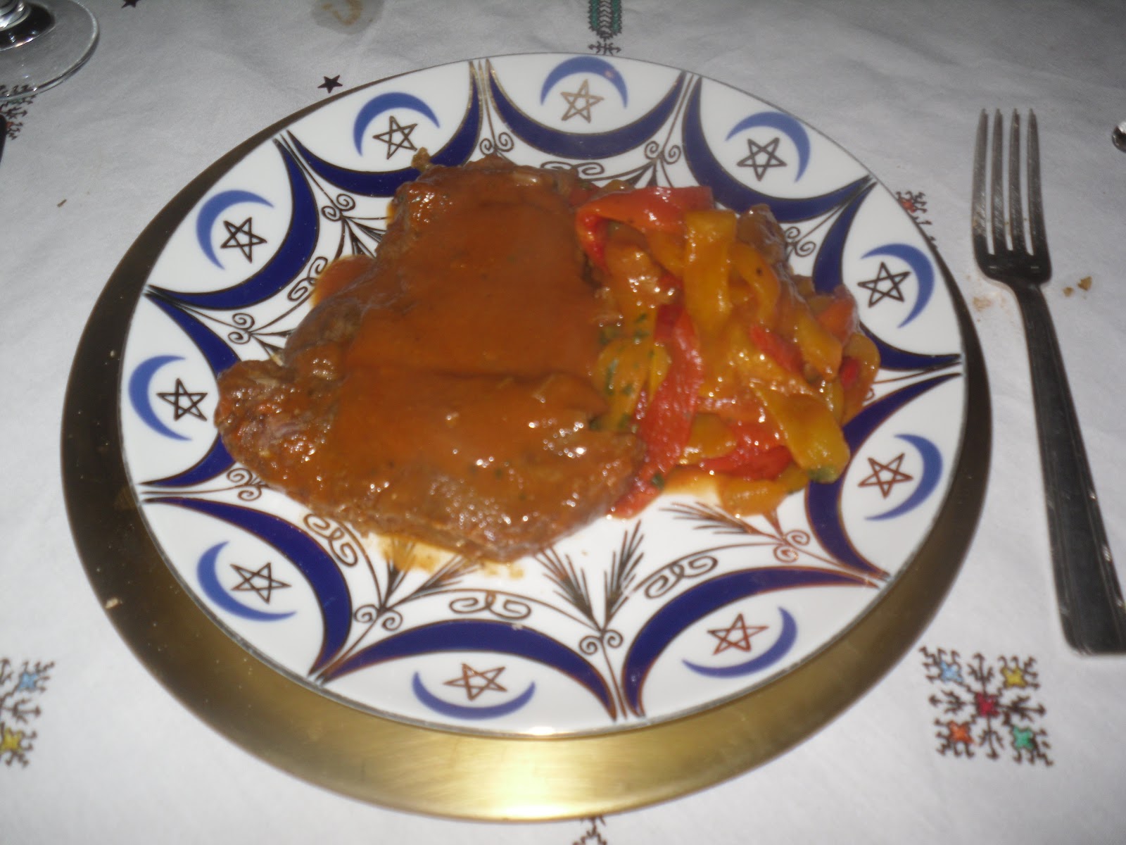 Dinner Last Night at the Riad: Broiled Beef Tenderloin with Onions and Peppers - Delicious!