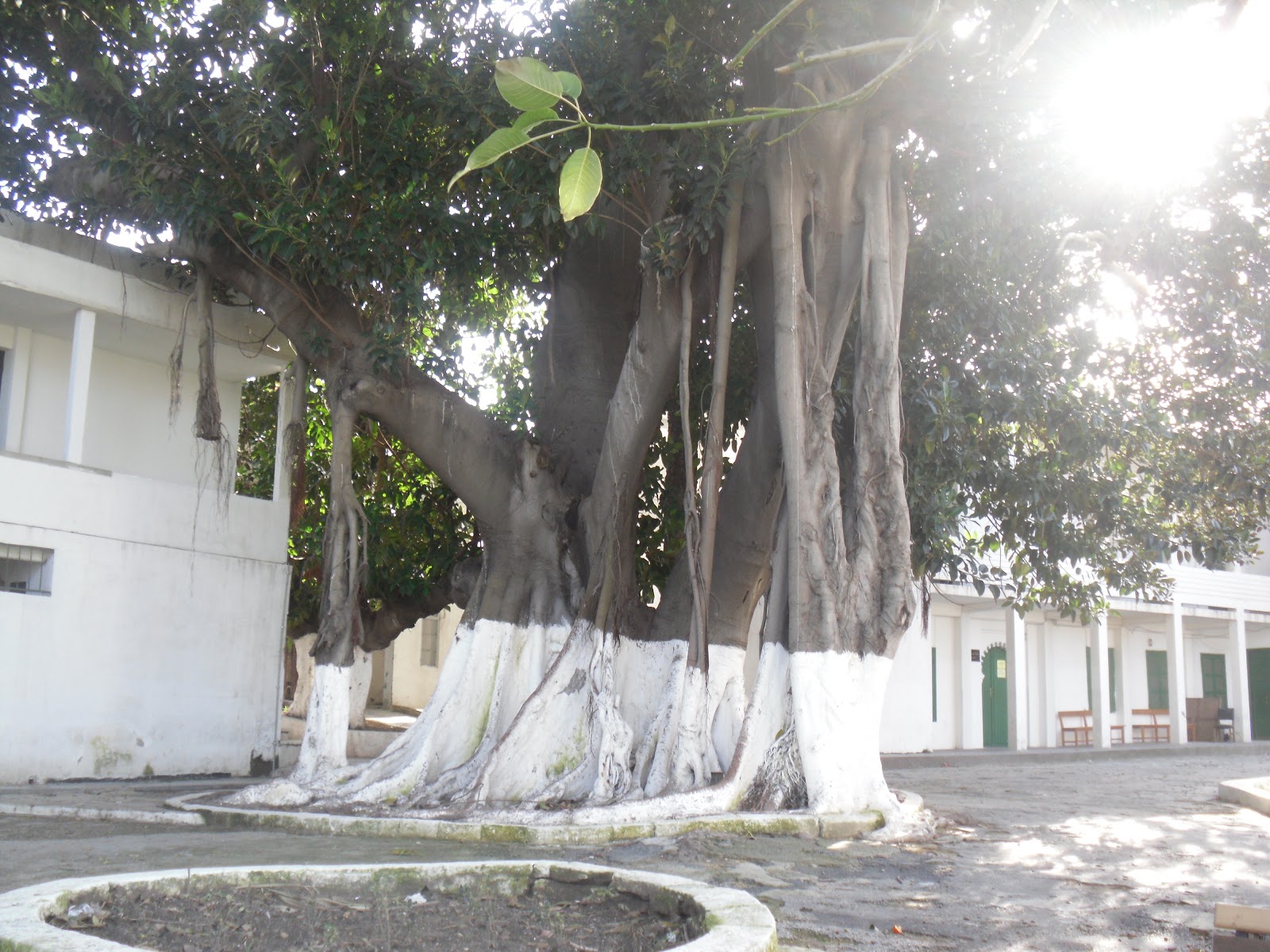The Bayan Trees of Mendoubia Gardens. Located behind the old French Governor's mansion, these protected trees are centuries old and weigh tons. Adaptive as they are, their branches (to the right and left) grow down to the ground and act as additional support.