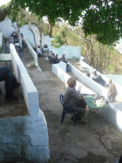 Including talent such as Jack Kerouac, Allen Ginsberg, Gregory Curso, William Burroughs, Brion Gynsin and Paul Bowles, the 1950's counterculture - as well as other artistic presences- was alive in Tangier. Note: all previous names were lost on me until recently reading my "Lonely Planet." Each of them either passed through the city or lived in it for various durations. Several of their locales (Hotel Continental, 1001 Nights, Hotel El-Muniria, Cafe de Paris) still stand today, but due to a severe lack of time I didn't visit any of them except for the Cafe Hafa.