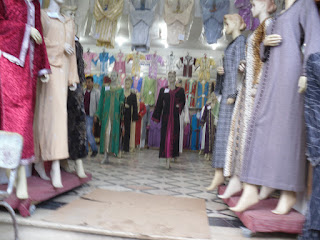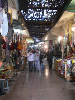 But back to the "Marjane." Mirroring any large American retail and grocery store, Morocco's mega-store is located in larger cities, offering competitive prices and trying to fill the consumer's every need. Large, neatly-organized, florescently-lit isles lined with kitchen appliances, computers, printers, TVs, groceries, fresh fruits and vegetables, clothing, exercise equipment, toys and power tools. Despite the presence of my shopping cart-led peers, this is ultimately a materialistic and lonely experience.