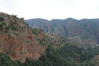 ...Unless you have your own vehicle, money for a rental or the patience for mass transportation, you'll miss a few of the central corridor's more impressive sites (click here for a map). For our trip, David and I drove most of the first afternoon through Marrakesh and its eastern foothills to Demnate and our first central site: its natural land bridge.