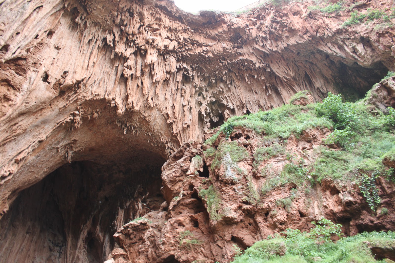 The Land Bridge measures over 4-stories high, sits beneath a paved road (barely visible above its two-story cavern) and hosts a couple waterfalls itself.