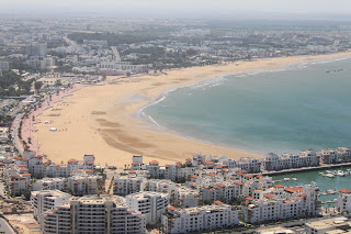 Safely on the "right" side of the river, we found safe passage to Agadir, finally arriving for a little bit of rest late in the evening. For the first time in a while, the sun welcomed us the next morning and brightened each of the city's three main attractions: the beach, port and mountain top overlook: the Effoulah.